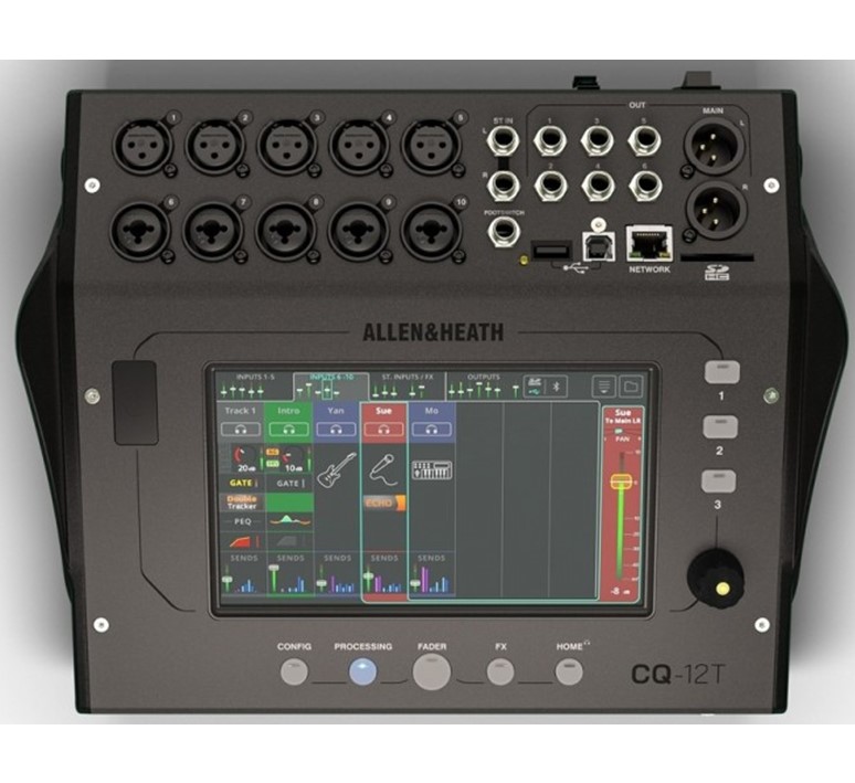 Allen & Heath CQ-12T digitale desktop mixer 10x mic/line, 1x stereo line, 4x FX,6x monitor, met 7″ touchscreen