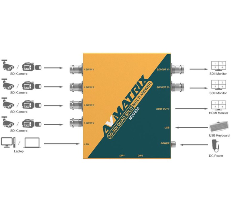 De AV Matrix MV0430 is een krachtige en compacte 4-kanaals SDI naar HDMI multiviewer, ideaal voor professionele video- en broadcasttoepassingen.