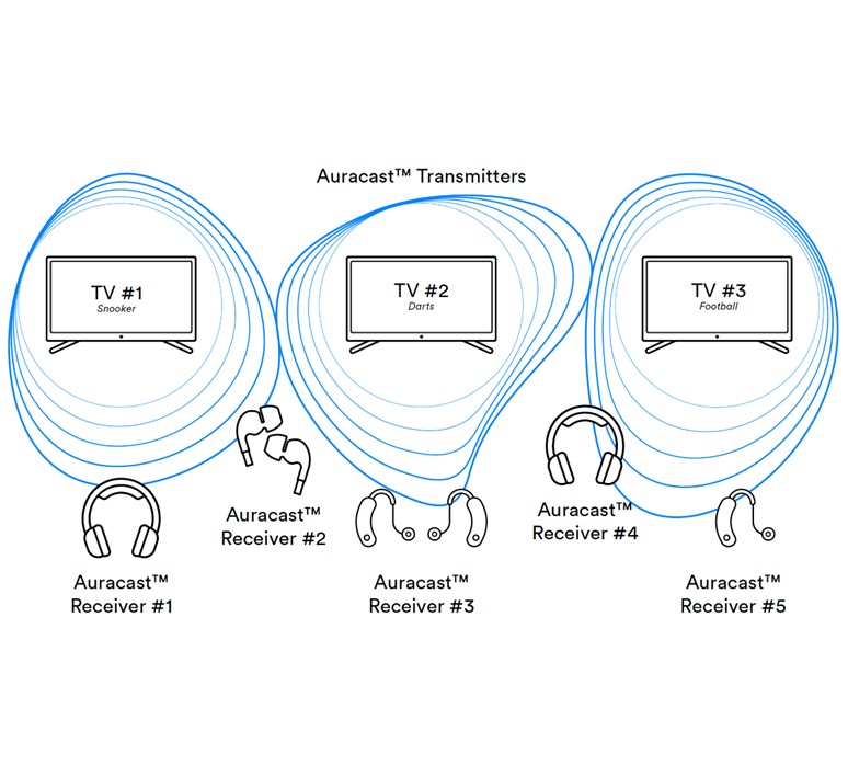 Met Auracast kunnen organisaties audio direct uitzenden naar een onbeperkt aantal compatibele Bluetooth-apparaten, waaronder: