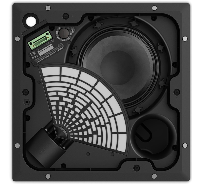EdgeMax-luidsprekers zijn ontworpen voor montage in de buurt van wand-plafondgrenzen en bieden verbeterde audiokwaliteit en dekking, terwijl het aantal benodigde eenheden wordt verminderd in vergelijking met conventionele dome-tweeter plafondluidsprekers.