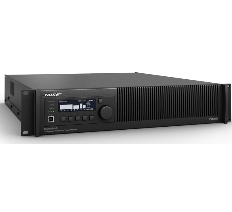 Bose PowerMatch PM8500-N is een configureerbare professionele versterker die geluid van concertkwaliteit toevoegt aan vaste installaties voor geluidsversterking.
