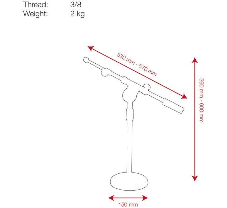 Microfoon tafel statief met verstelbare arm chroom 1,5kg.