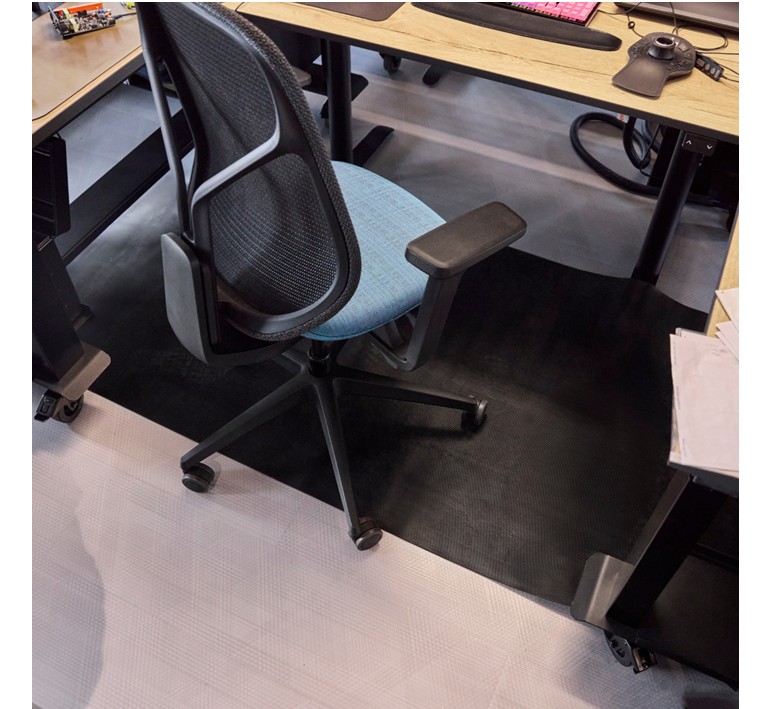 Door de flexibele structuur is de mat eenvoudig te plaatsen over losse kabels en snoeren.