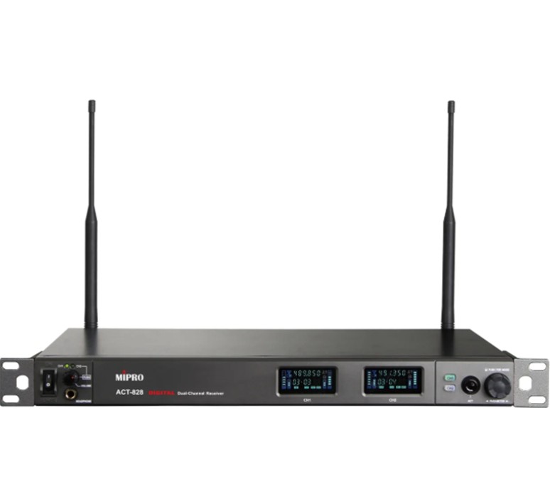 De Mipro ACT-828 is een professionele dubbele digitale diversity ontvanger in een standaard 19″ rackformaat, ontworpen voor veeleisende draadloze audio-installaties.
