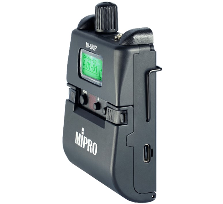 Mipro Digitaal MI-580R stereo in-ear monitor 5,8GHz bodypack ontvanger 2x AA of 18500 Li-ion batterij incl. E-8S