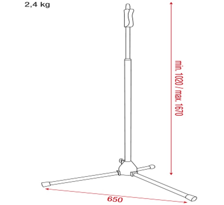 Microfoonstandaard quick lock 1020 – 1670mm met 3/8 schroefdraad.
