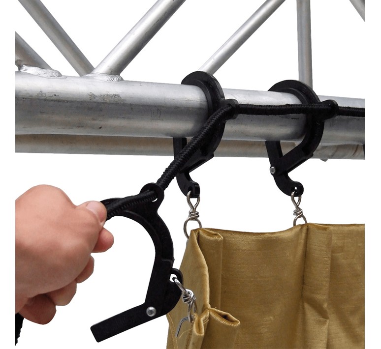 De “Rapido” gordijnklem is geconstrueerd om gordijnen gemakkelijk aan spanten en podiumstructuren te bevestigen.
