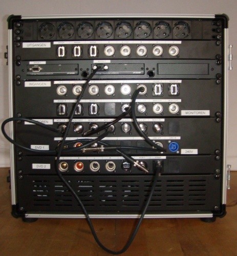 Deze regie set heeft 8 ingangen en 4 uitgangen, de Analog Way Octo Fade is het hart van de set.